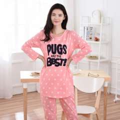 2017春秋新款纯棉长袖冬睡衣女士波点全棉少女可外穿家居服套装