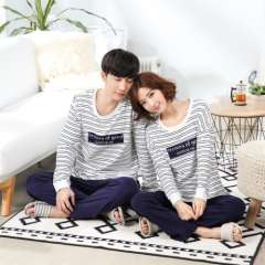 春秋韩版情侣睡衣纯棉冬长袖条纹休闲男女全棉家居服套装厂家批发