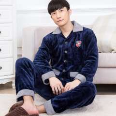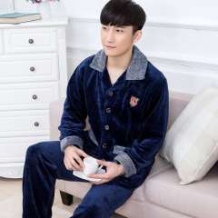 厂家批发冬季加厚珊瑚绒睡衣男士长袖秋法兰绒棉袄保暖家居服套装