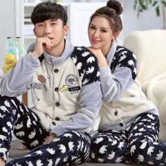 新款法兰绒长袖情侣睡衣 | 开衫加厚珊瑚绒情侣男女士保暖睡衣套装
