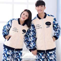 新款冬季加厚珊瑚绒夹棉情侣睡衣冬天迷彩男士套装女款家居服套装