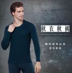 青年男士圆领提花保暖内衣秋衣秋裤套装盒装商务打底工厂批发