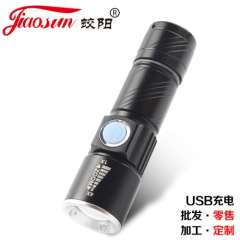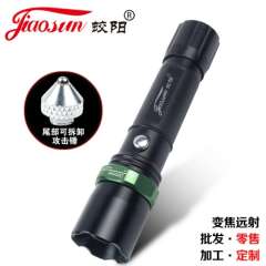 蛟阳LED变焦充电铝合金带安全锤强光手电筒 | 礼品户外照明露营手电