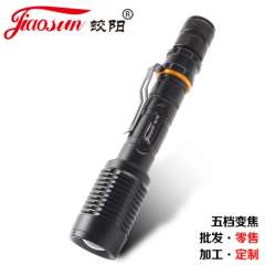 厂家批发蛟阳户外led定焦远射T6打猎强光手电筒防身26650手电筒