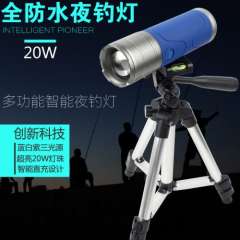 厂家直销防水钓鱼灯30w变焦蓝白光LED夜钓超亮远射充电台钓灯手电