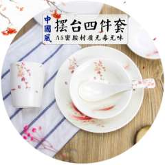 中式酒店餐厅摆台餐具密胺a5塑料仿瓷碗勺碟组合四件套装创意印花
