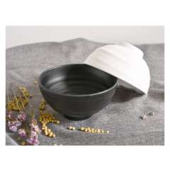 拉面碗饭店面馆餐具中式仿瓷黑白磨砂面碗粥碗汤碗螺纹面碗A5密胺
