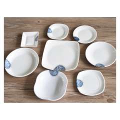青花瓷餐具套装耐摔碗碟盘酒店饭店专用成套密胺塑料四方盘圆碟42