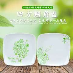 四方盘仿瓷餐具创意花纹加厚密胺塑料盘子翘角盘中式烤肉盘饭店