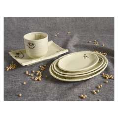 圆盘餐具长方盘茄子图案定制A5密胺塑料防烫耐摔水杯酒店饭店餐盘