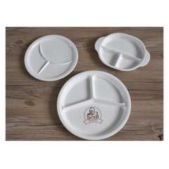 餐盘儿童分格盘零食小吃盘A5密胺餐具耐摔防烫白色仿瓷双耳盘子23