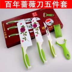 百年蔷薇 | 五件套 | 双面印花刀 | 跑江湖最新热卖产品 | 刀具套装厨房
