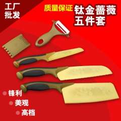 厂家直销百年蔷薇刀 | 黄金钛金刀五件套厨房套刀多功能刀具批发