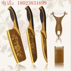 厂家供应跑江湖展销会黄金刀具百年蔷薇刀 | 钛金刀五件套 | 礼品套刀