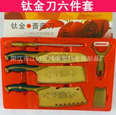 厂家直销百年蔷薇刀 | 黄金钛金刀六件套厨房套刀多功能刀具批发