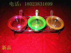 新品高档塑料亚克力不锈钢架调料罐调味盒 | 厨房用品调料盒调味罐