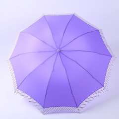 新款花边圆点折叠雨伞伞 | 女士拒水三折伞 | 小清新波点雨伞批发