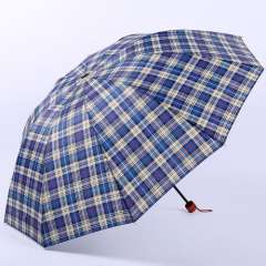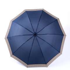 纯色格子包边 | 加大加固十骨抗风三折折叠一甩干钢骨晴雨伞批发