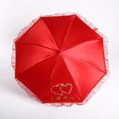 厂家直销创意花边新娘雨伞四折折叠红伞 | 婚庆用品遮阳晴雨伞批发