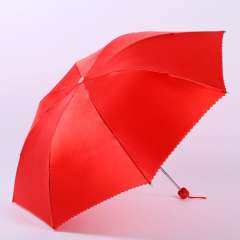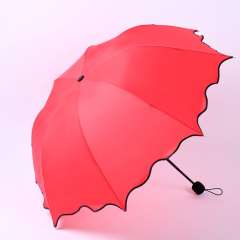 防紫外线遮阳晴雨两用折叠公主大红色浪漫波浪荷叶黑边雨伞批发