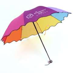 创意可爱折叠彩虹伞晴雨伞荷叶花边四折雨伞印logo商务广告伞批发