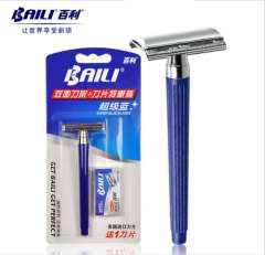 BAILI百利老式手动剃须刀刮胡刀超级蓝进口白金双面刀片BP003