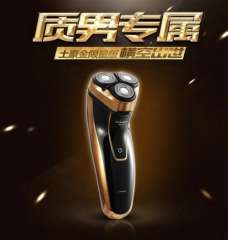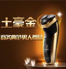 盛发3302男士剃须刀电动 | 充电式旋转式3刀头刮胡刀土豪金跑江湖
