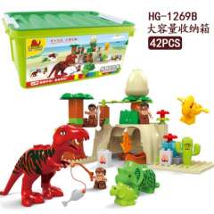 亲汇1269B大颗粒侏罗纪恐龙塑料积木宝宝早教益智拼装收纳箱积木