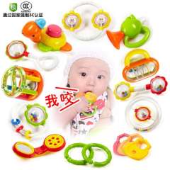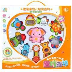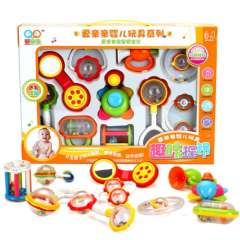 爱亲亲宝宝音乐手摇铃牙胶组合10件套装 | 新生婴儿玩具0-1岁床摇铃