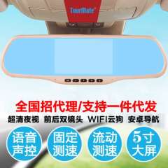 安卓5寸屏后视镜行车记录仪智能导航仪电子狗WIFI多功能一体机
