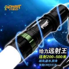 开拓者户外手电筒强光远射LED变焦充电露营照明手电筒铝合金防水