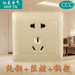 仙泰墙壁插座 | 单相二三级暗插座 | 香槟金五孔插座 | 86型5孔墙壁插座