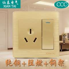 仙泰墙壁插座 | 一开三孔16A插座 | 香槟金空调带开关插座 | 86型插座