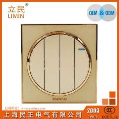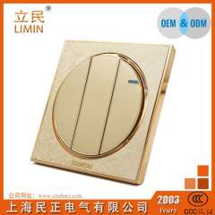 2016新款墙壁开关 | 香槟色圆形三开单控开关插座 | 工厂直销三位开关