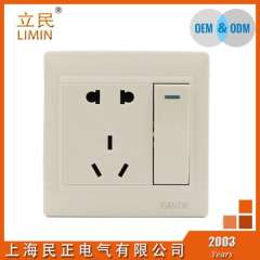 供应86型插座开关 | 香槟色一开五孔双控 | 暗装五孔插座带开关