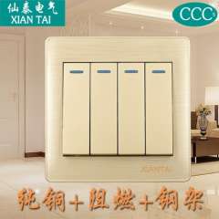 供应仙泰G5香槟色墙壁开关 | 四位开关单控 | 86型四联单控开关