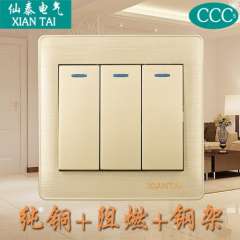 供应仙泰86型墙壁开关 | 香槟色三位开关 | 暗装三联单控开关 | 家装款