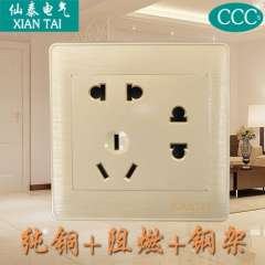 仙泰墙壁插座 | 单相二二三级暗插座 | 香槟金七孔插座 | 暗装家装款