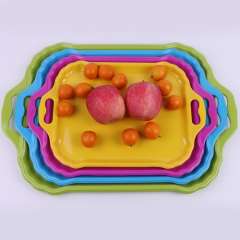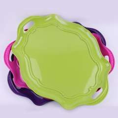 生产彩色塑料花边密胺托盘 | 仿瓷双耳茶水托盘 | 彩色密胺水果托盘