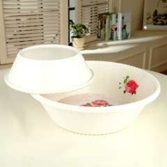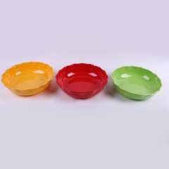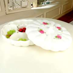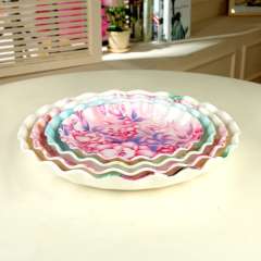 专业生产塑料密胺水果盘 | 圆形花边贴花果盘