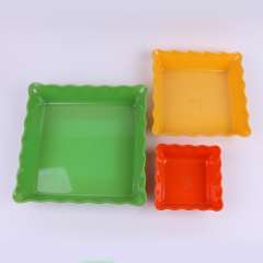 正方形彩色塑料密胺方形花边果盘 | 仿瓷创意餐具瓜子花生水果盘