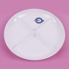 新品中式圆形密胺四格快餐盘 | 仿瓷四格用餐盘 | 美耐皿四格用餐盘