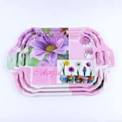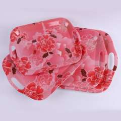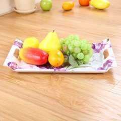 外贸新款长方形双耳印花塑料密胺托盘长方形仿瓷茶水托盘水果托盘