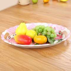 居家日用茶水盘 | 仿瓷水果托盘花边双耳贴花密胺椭圆盘 | 外贸批发