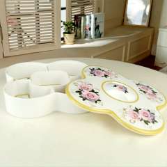 年货爆款4朵梅花形花生糖果盒 | 仿瓷贴花创意带盖美耐皿零食盒