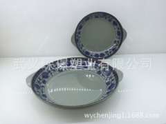 2017新款简约纯色密胺餐具 | 仿瓷餐具青花瓷双耳盘子饭店菜盘批发