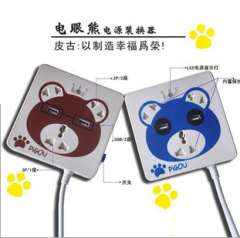 厂家直销个性卡通排插 | 小熊USB充电插座 | 带LED指示灯 | 内置保护套