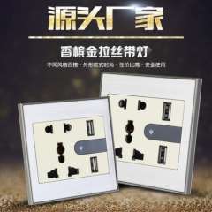 厂家直销86型国标带USB开关多功能墙壁电源插座 | 带LED灯5孔面板