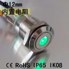 直销 12mm 高头 | 金属按钮开关 | 自复位式 | 防水环形发光 | 黄铜镀镍