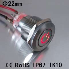 直销 22mm 金属按钮开关 | 自锁式 | 自复式 | 防水按钮 | 带电源符号